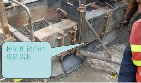 6、对摊铺机进行适当的改进(如在摊铺机两侧挡料板下加挡料皮等),以避免混合料离析。