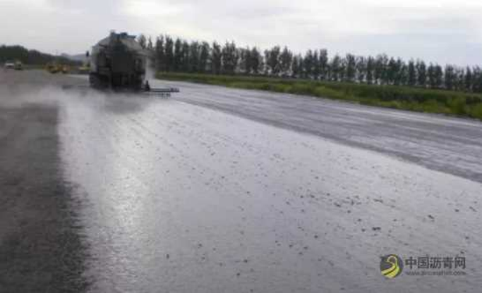 上基层施工完成后,若能全部封闭交通,采用洒布乳化沥青透层加热沥青封层养生,经监理人验收合格后,在碾压成型路段上及时洒布乳化沥青(一般用量1.2Kg/m2),破乳后再洒布热沥青(一般用量1.0-1.2Kg/m2),乳化沥青及热沥青的洒布量根据试验段情况确定。在摊铺沥青面层前一天洒布预拌碎石(6~8m3/Km2),热拌热撒(145℃-165℃)。