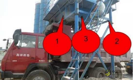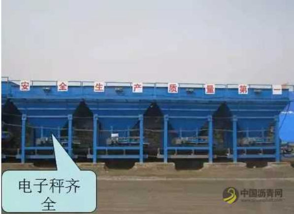 (即整车料分三节出料,车斗前中后三个堆放,以免干燥脱水摊铺路面不相符产生离析)