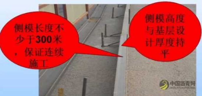 4、当基层不能全幅摊铺而采用半幅摊铺时,应在中缝处设立侧模。