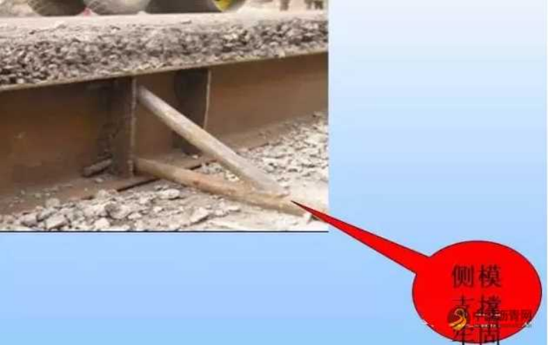 钢模板采用三角撑和Φ25钢钎共同支撑,支撑牢固,每根钢模板分别用三根三角撑和钢钎来支撑,分别支撑于钢模的1m、3m、5m处;相邻模板之间互相扣连,防止模板发生变形。