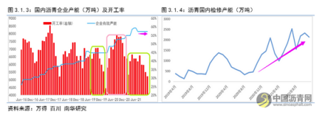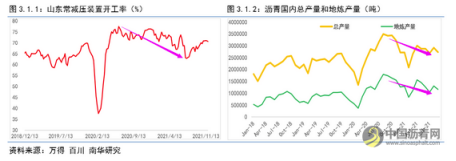 3.1.1. 2021年下半年来沥青产量受产业政策和利润水平双重打压