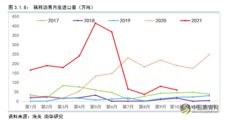 我们预计2022年沥青的净进口量依然相对平稳,给予和2021年类似的体量。