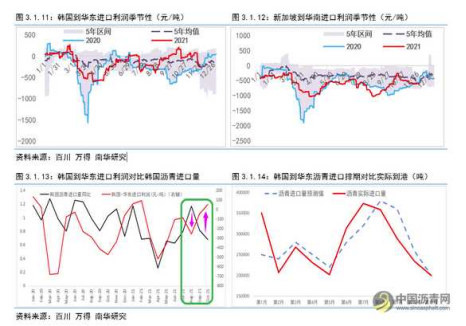 限于海外炼厂的产品转换格局(韩国大部分炼厂产能逐渐从沥青转向船燃),我们对沥青进口端的增量亦估算相对保守,仅仅给予其普通的季节性同比体量。
