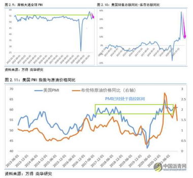 另外,全球油品需求的增长率,与全球GDP增速高度相关,我们认为经济增速最快的时间段已经过去(2021年上半年),明年全球将再度陷入经济增长乏力的困境,事实上我们目前在跟踪诸多大宗商品终端需求、全球主要经济体PMI数据时已经有这样的感受。