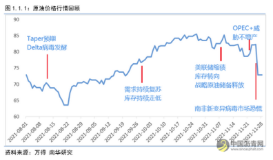 总体而言,即使当前有新冠变异毒株“奥密克戎”的负面冲击,原油价格在短期貌似跌得“一步到位”,虽然不排除短线会有情绪纠偏、疫情严重程度纠偏的可能性反弹,但通过对未来供需层面的分析、以及美国可能在2022年进一步收缩流动性等种种因素的考量,我们对原油依然是2022年全年原油重心逐步向下的定调。