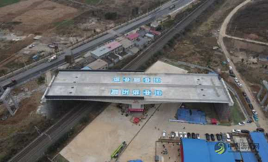 经过约1小时的转体施工,湖北襄阳绕城高速南段公路立交桥重1.55万吨的T构箱梁12月16日顺时针平转58度后,成功跨越焦柳铁路,与两侧的交接墩“凌空牵手”、成功转体。