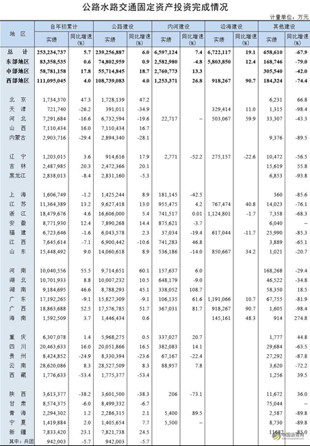 2021年1-11月公路水路交通固定资产投资完成情况