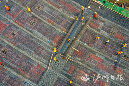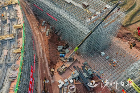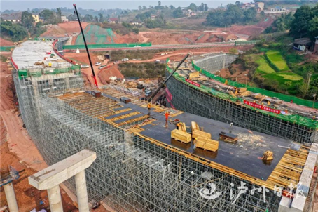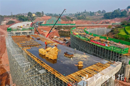 与此同时,S33泸州至永川(川渝界)高速公路项目关键节点性工程——中和枢纽互通也在按计划稳步推进,预计2022年元旦节前完成上跨钢箱梁施工,春运前完成所有匝道及主线桥梁工程贯通。