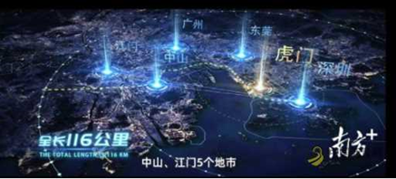 深江铁路新建正线全长116.12公里,途经深圳、广州、东莞、中山、江门等5个地市,其中桥梁69.2公里,隧道45.1公里,正线桥隧比例98%,设计速度250公里/小时,建设工期5.5年,预计在2025年建成通车。