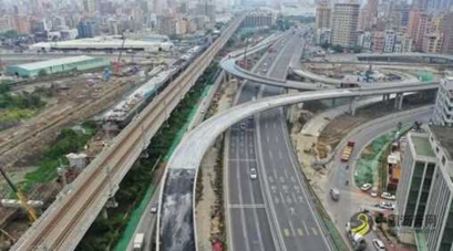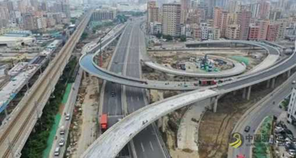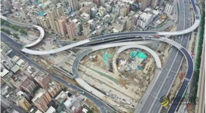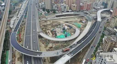 黄河路调头匝道桥、汕北大道左转进入泰山南路匝道桥以及泰山北路左转进入汕北大道等三座匝道桥正在进行防撞栏等附属设施施工,下一步也将开始铺筑沥青桥面。