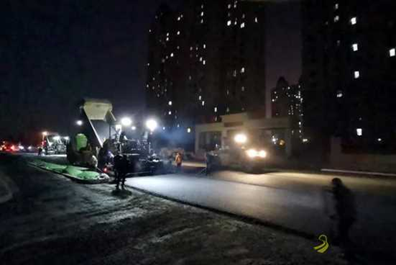 施工过程中,博诚路桥公司派专人在现场进行全程监督管理,严格控制施工质量,同时克服各种不利因素,采取了昼夜连续施工的方式,在48小时内圆满完成了该道路8800平方米的沥青铺筑。